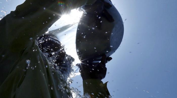 A man pouring water on himself to beat the heat in Lahore-AgenciesLAHORE: The provincial capital of Punjab like other plains of the country remained in the grip of severe heatwave on Saturday and mercury level reached 43 degrees centigrade.Experts...